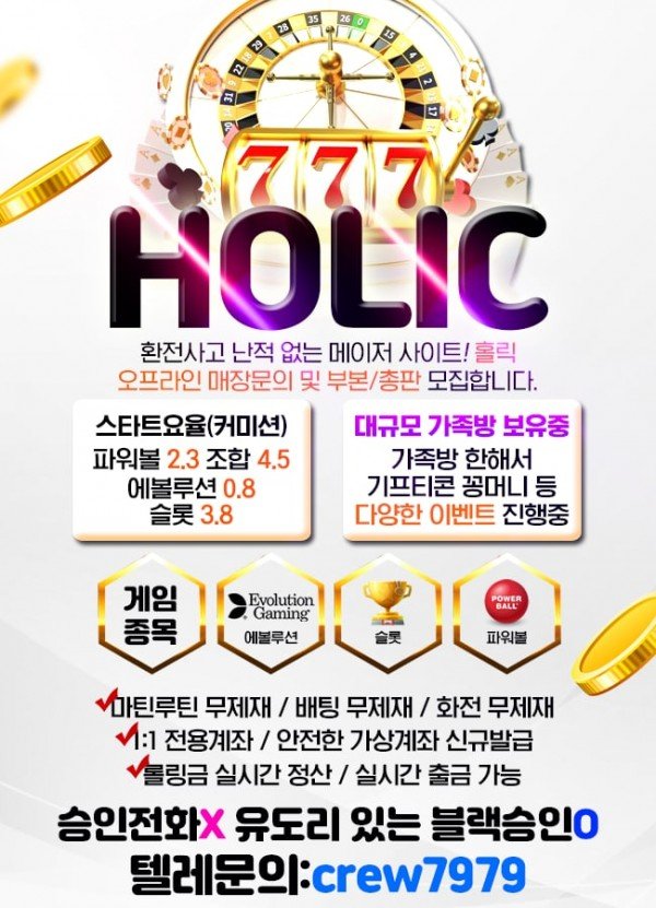 ✨ 홀릭 ✨ 카지노/슬롯 ❤️최대요율 총판파트너(매장)및 개인회원 모집중 롤링정산 ❤️