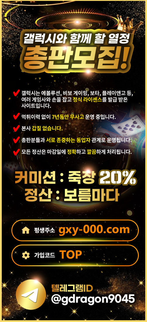 저희 갤럭시카지노와 좋은 분위기 속 소통하며 오랫동안 함께하실 파트너(총판)를 모집합니다.